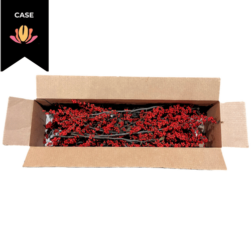 Local Winterberry is back! Each case has approximately 25 stems, between 10-24″ long. Wonderful for use in seasonal arrangements, porch pots, wreaths, installs! Spray your berries with clear furniture wax and they will last longer.
