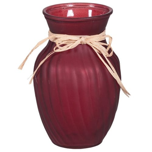 Rose Vs 8″ frosty red w/raffia 12cs