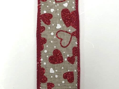 VDAY #40 Natural linen w/red-wht sprinkle hearts 10yrds
